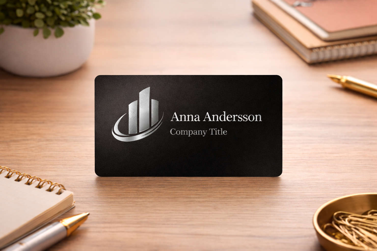 Designa dina egna metalliska visitkort. Det ger dig en visuell fördel före alla andra. Var så utförlig som möjligt i din beskrivning av hur du vill att den ska se ut. Du kan också ladda upp en bild eller en annan fil som förklarar det du vill ha. Tänk på att ytan lasras bort där text eller bild ska vara.